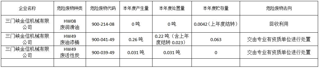 2023年固體廢物污染防治信息公示表